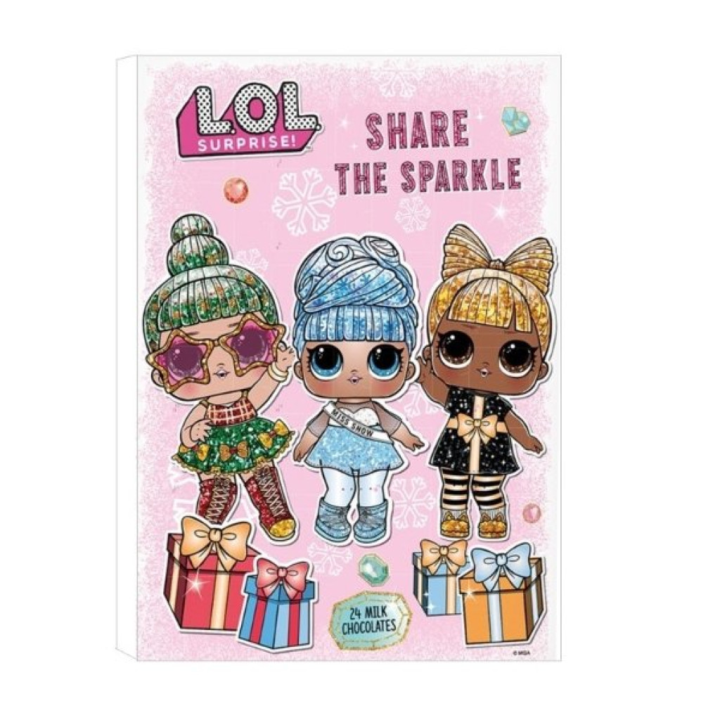 L.O.L. Adventní kalendář 75g. Složení: cukr, kakaové máslo, kakaová hmota, plnotučné sušené mléko, sušené odstředěné mléko, syrovátkové produkty, mléčný tuk, emulgátory (sojový lecitin, polygycerolpolyricinoleát), příchutě, arašídová pasta. Může obsahovat stopy sezamu, lepku, vajec a jiných skořápkových plodů. Alergeny jsou označeny tučným písmem. Průměrné výživové hodnoty 100g: Energie… 535kcal/ 2234kJ. Tuky/z toho nasycené mastné kyseliny 30g/19g. Sacharidy/ z toho cukry 58g/ 58g. Vláknina 5,8g. Bílkoviny 2,4g. Sůl 0,24g. více