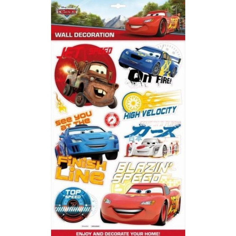 Dekorativní samolepky 3D s motivem Disney Cars vhodné na výzdobu dětského pokojíčku, rozměry archu: 49 x 30 x 1 cm