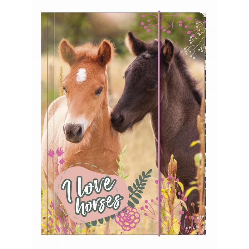 • Papírová složka na dokumenty - desky na sešity formátu A4, s gumičkou, s potiskem koně, obrázky z obou stran i uvnitř složky,...