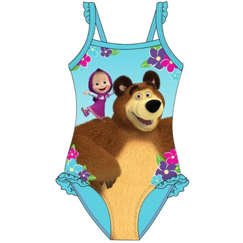 Dětské plavky s obrázkem Máša a Medvěd. Jednodílné plavky jsou v modré provedení. Dětské oblečení je z materiálu 88% polyester + 12% elastan, rychle schnoucí materiál. Dívčí plavky Máša a Medvěd rozveselí každou slečnu.