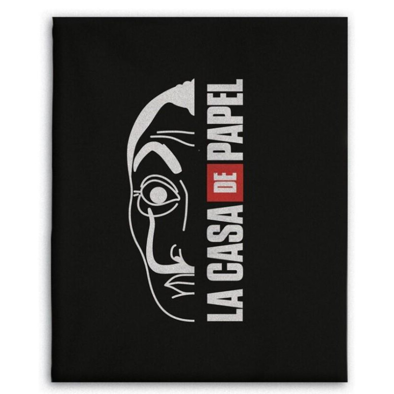 Flísová deka s motivem La casa de papel. Černá barva. Materiál: 100% polyester, polární flís. Rozměry: 100 x 140 cm. Oficiální licence.