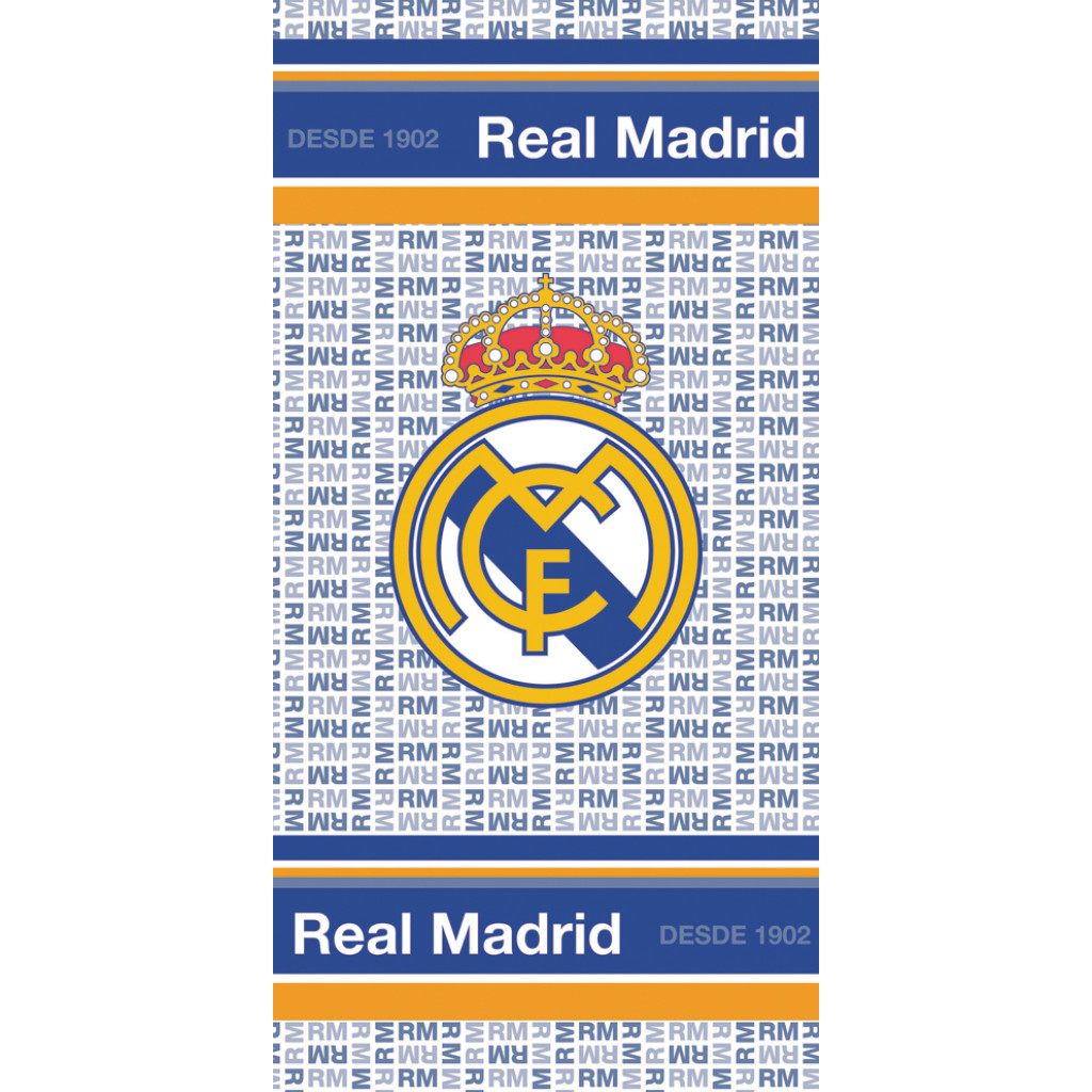 Osuška Real Madrid Medium Blue, která je vyrobena ze 100% polyesteru a její rozměry jsou 70x140 cm.