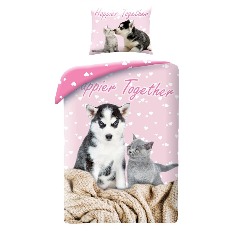 Dětské povlečení ve vaku Kotě a Štěně pink.