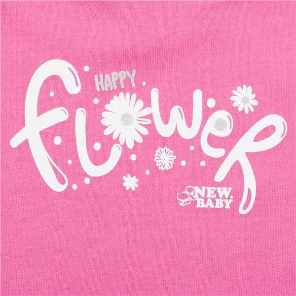 Kojenecká soupravička české značky New Baby Happy Flower pro miminka. Obsahuje tričko a tepláčky. Tričko zdobí nápis Happy flower a šmrncovní volánkové rukávky. Zapínání na cvoček u krčku na zadní straně. Tepláčky mají širší lem, jsou zúžené na nohavičkách s lemem a jsou celopotištěné květinkami. Složení: 100% bavlna.