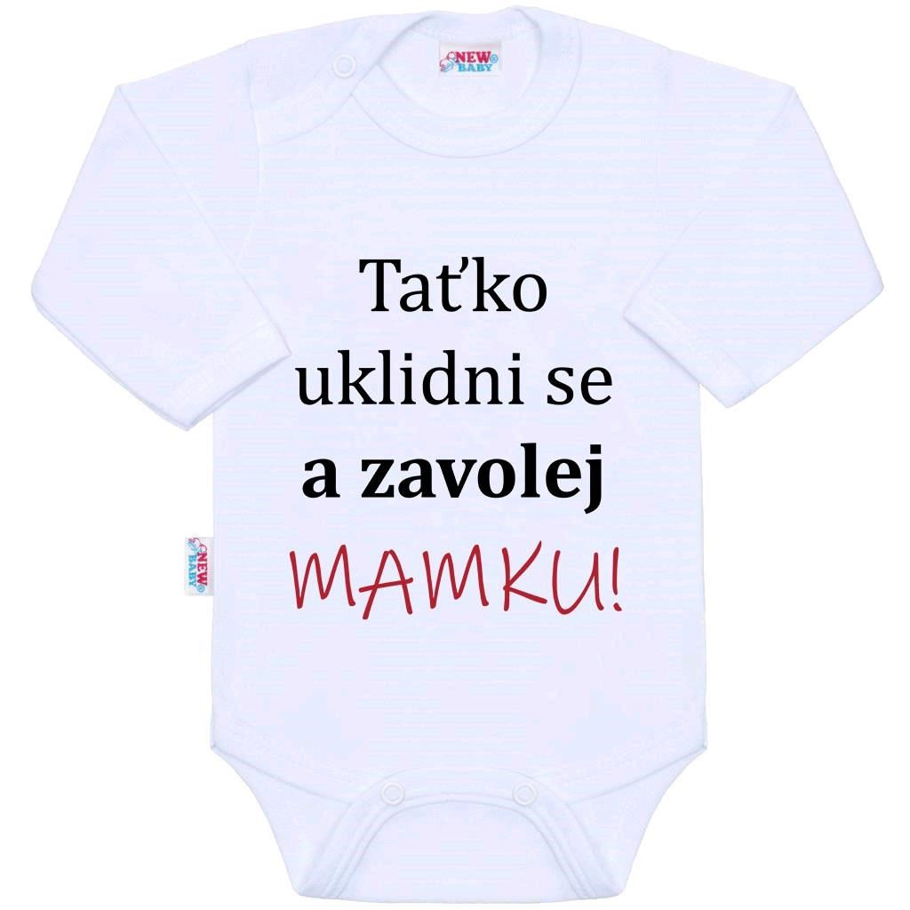 Originální bavlněné kojenecké body s dlouhým rukávem New Baby, s vtipným nápisem Taťko uklidni se a zavolej MAMKU! Barvy použité k potisku jsou certifikované a vhodné pro miminka. Je vyrobeno z příjemného a kvalitního materiálu 100% bavlna.