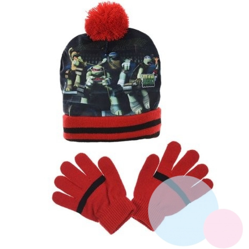 Dětské rukavice a čepice s motivem Turtles. Souprava v provedení červené barvy. Čepice a rukavice Želvy Ninja. Svrchní materiál: samet, 100% polyester. S flísovou podšívkou, 100% polyester. Rukavice 100% acrylyc. Dětské oblečení s motivem Želvy Ninja udělá velkou radost fanouškům těchto hrdinů. Oficiální licence.