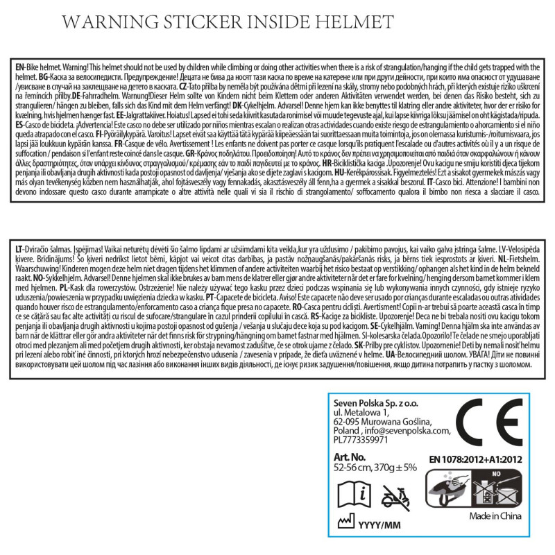 Tuto přilbu by děti neměly používat při lezení nebo jiných činnostech, kdy hrozí riziko uškrcení - zavěšení, pokud by se dítě o přilbu zachytilo.