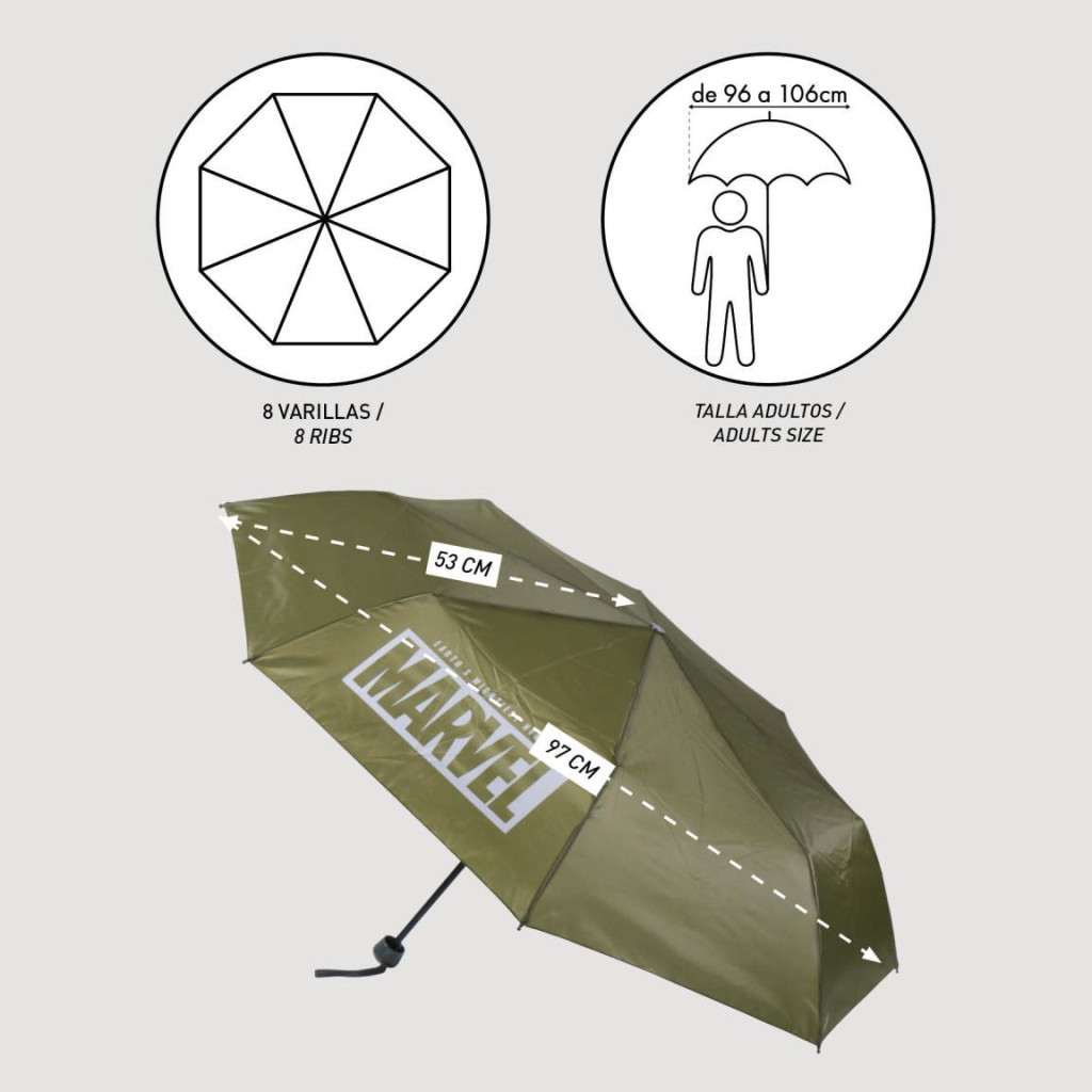 Chraňte své malé superhrdiny před deštěm s deštníkem Marvel v barvě khaki! Ideální doplněk pro každého fanouška Avengers, tento manuální deštník zajistí, že váš kluk zůstane suchý a v teple za každého počasí. Perfektně se hodí k bundám, mikinám, teplákům či jakémukoli jinému dětskému oblečení, včetně legínů nebo trička. Nezapomeňte doladit outfit gumáky a batohem s oblíbenými filmovými motivy pro… kompletní superhrdinský vzhled. Doporučujeme jako esenciální součást výbavy pro každé dětské dobrodružství, ať už do školy nebo na výlet. více