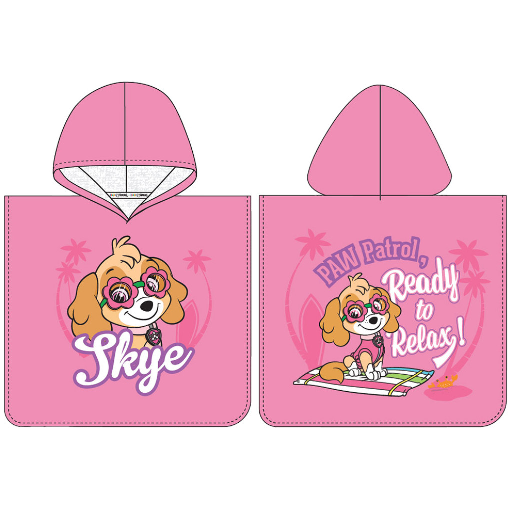 Růžové dětské pončo s motivem Skye z Tlapkové patroly. Vyrobeno ze 100% bavlny, hebké a savé, ideální po koupání doma, u moře i u bazénu.