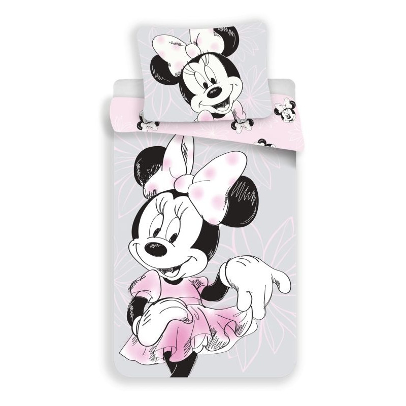 Dívčí povlečení Minnie Beautiful v šedo-růžovém provedení. Bavlněné povlečení na velkou postel, motiv peřiny je z každé strany jiný, zapínání na zip, možno prát na 40°C. Materiál: 100% Bavlna. Rozměr: 1x 140/200, 1x 70/90 cm.