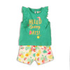 Objednejte si nádherný kojenecký set pro holčičky, který obsahuje zelené tílko a kraťasy s originálním nápisem. Tato praktická souprava je ideální na teplé letní dny a poskytuje vašemu dítěti maximální pohodlí a volnost pohybu, ať už doma nebo na procházce. Součástí kolekce dětského oblečení jsou také trička, legíny a mikiny. Nezapomínejte doplnit outfit kloboučkem nebo kšiltovkou pro ochranu…