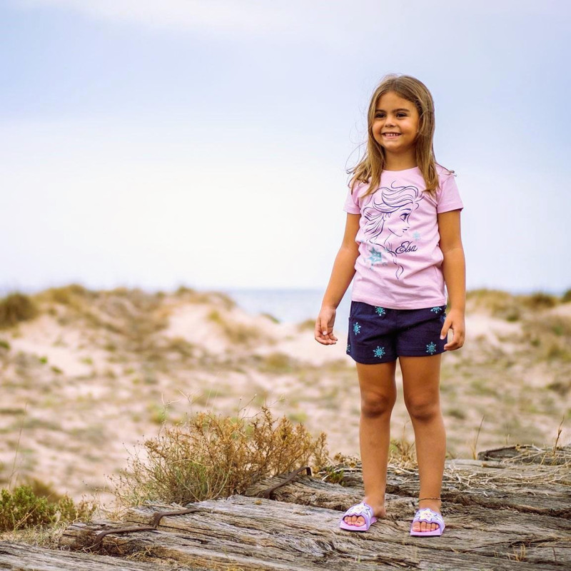 2 - dílná souprava tričko a kraťasy Frozen. Materiál: 100% bavlna. Barva: růžovo - tm. modrá. Výrobce: Cerda.