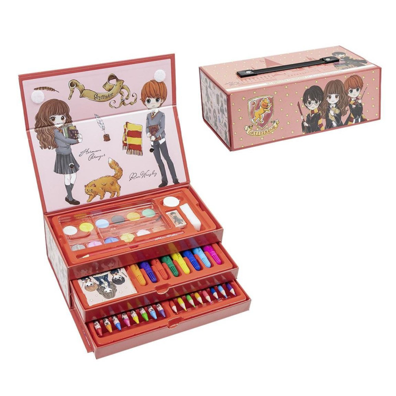 Kreslící souprava Harry Potter v praktickém kufříku. Obsahuje: celkem 42 ks dle vyobrazení - fixky, crayony, barvičky, notýsek, pastelky, tužku, gumu, ořezávátko, štětec, houbičku a jiné. Rozměry balení: 26 x 14 x 9 cm. Oficiální licence, Cerda.