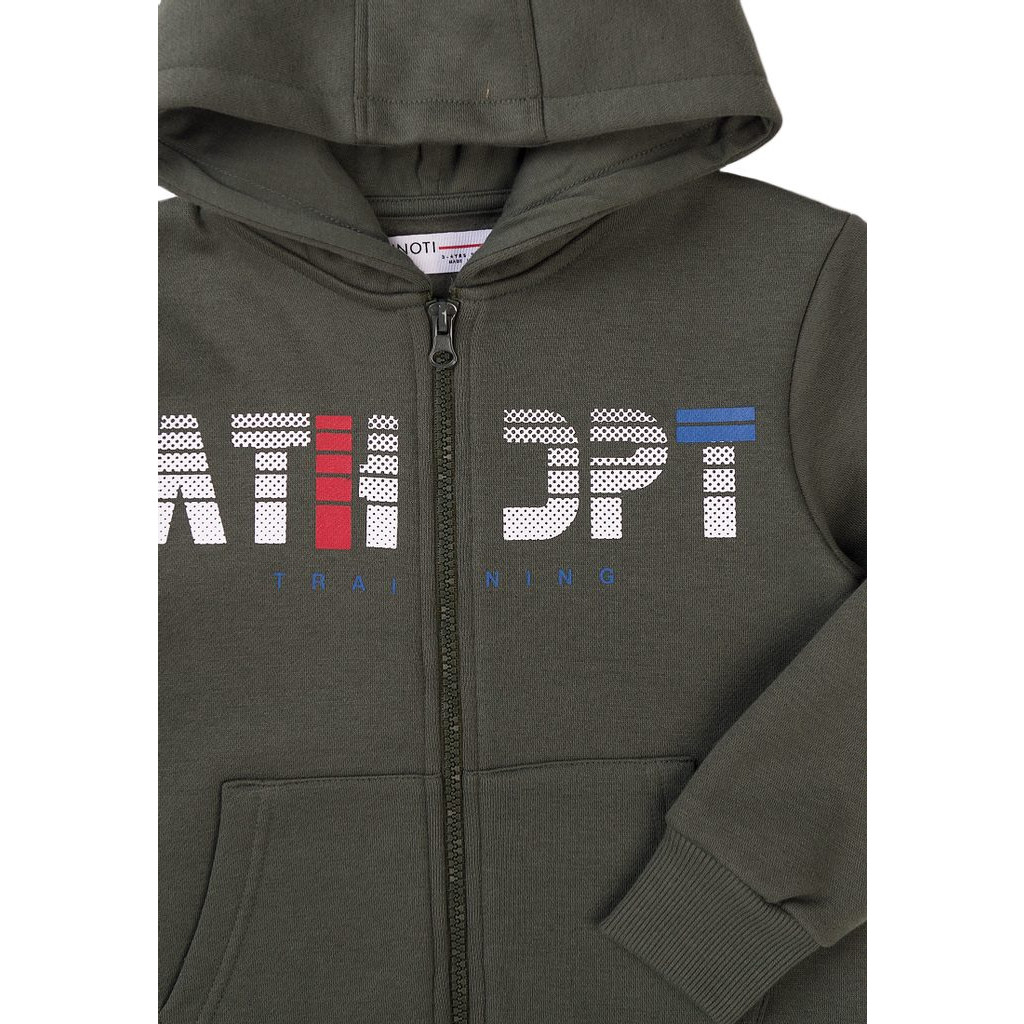 Chlapecká mikina s kapucí v khaki barvě. Oblíbená značka Minoti.