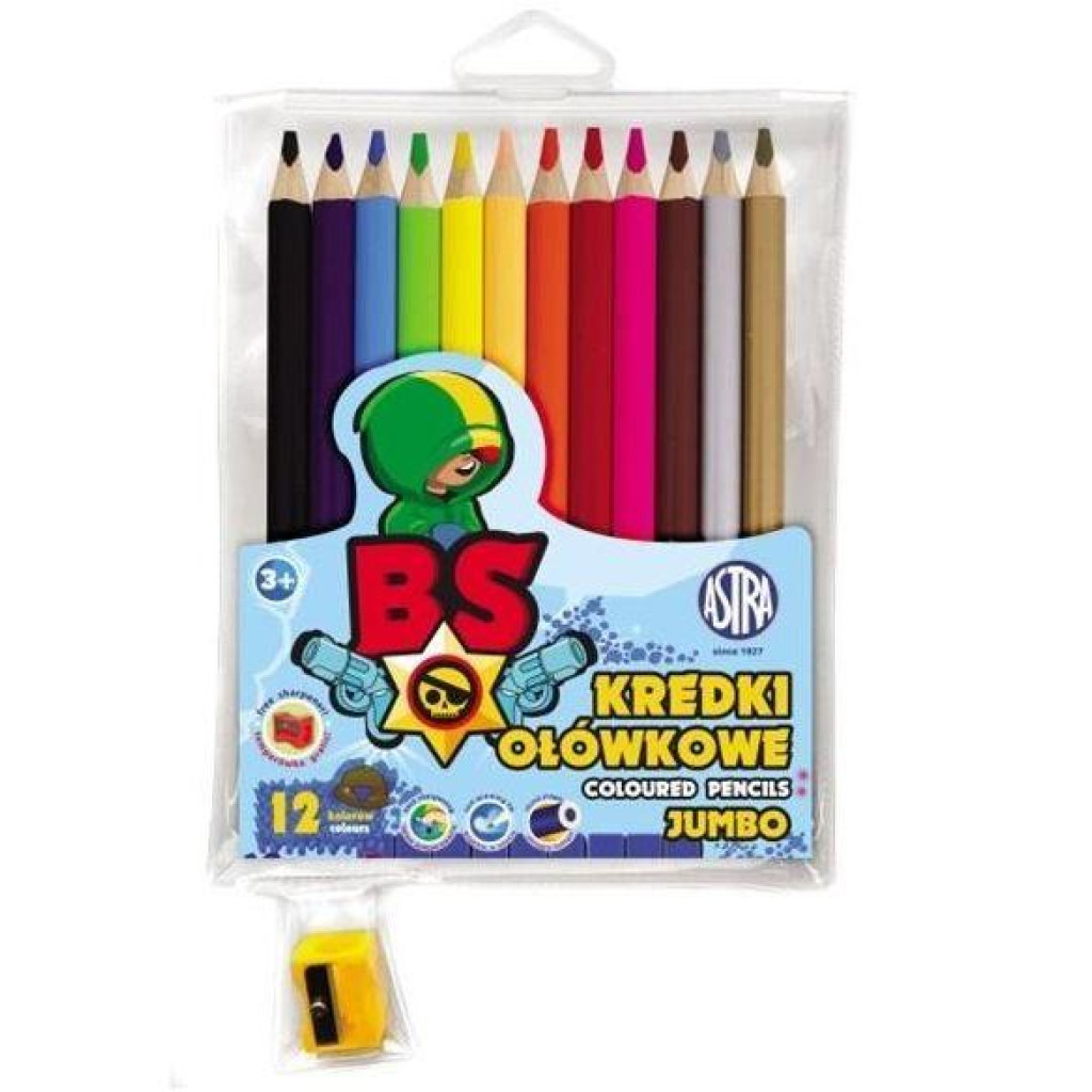 Dětské pastelky a ořezávátko Brawl Stars. Obsahuje 12 ks pastelek a ořezávátko.