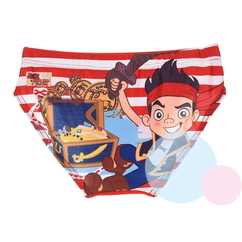 Chlapecké plavky s potiskem Jake a Pirtáti. Dětské oblečení je z materiálu 85% polyester, 15% elastan. Plavecké slipy jsou v červené barvě. Plavky s motivem Jake a Piráti na zadní části oblečení. Výrobce: Sun City.