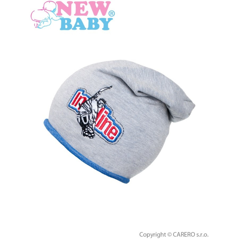 Dětská čepice v šedo-modré barvě. Krásná podzimní bavlněná čepička New Baby. Čepičku zdobí krásný obrázek In-line. Čepice pro kluky je ušitá z prodyšného materiálu, proto je vhodná pro podzimní dny. Ideální pro malé i větší děti. Složení dětského oblečení je 100% bavlna. Obvod kolem hlavičky cca 46-51 cm.
