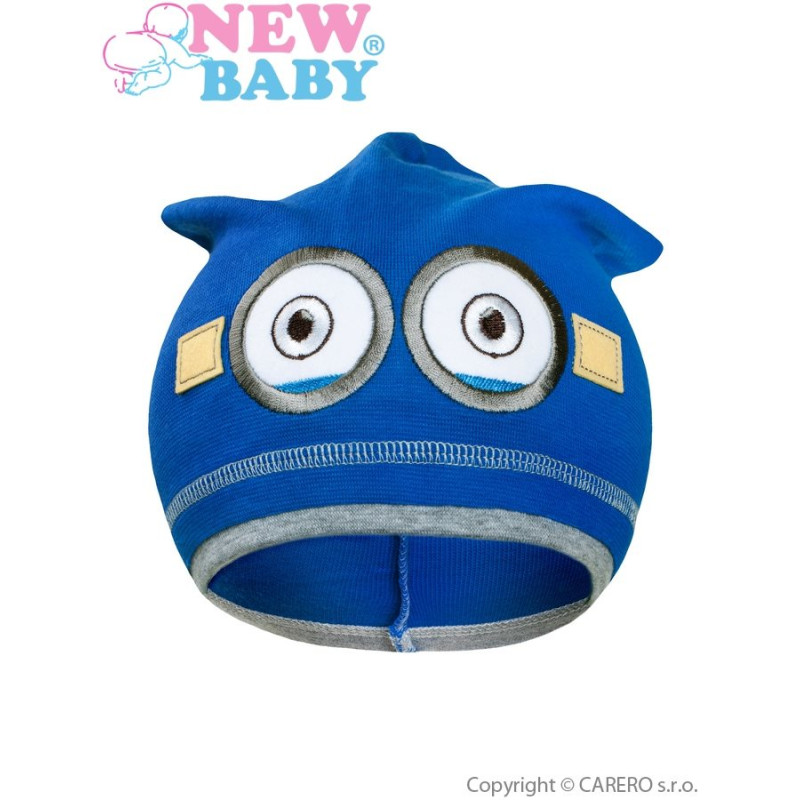 Dětská trendy čepice v tmavě modré barvě. Krásná podzimní bavlněná čepička New Baby. Čepičku pro kluky zdobí krásný obrázek mimoně. Čepička je ušitá z prodyšného materiálu, proto je vhodná pro podzimní dny. Ideální pro malé i větší děti. Dětské oblečení z materiálu 100% bavlna. Materiál je pružný. Obvod kolem hlavičky cca 44-48 cm.