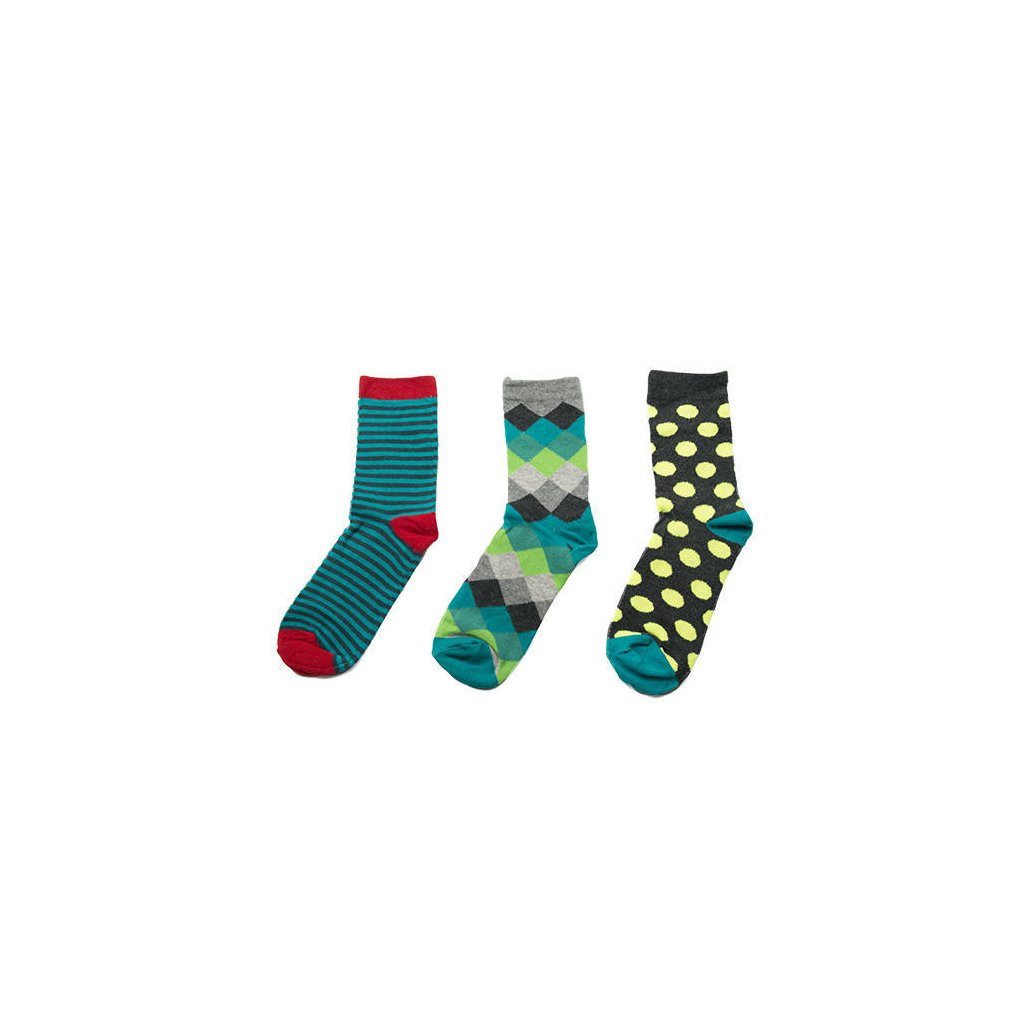 Dětské ponožky v chlapeckém provedení. Balení 3 páry - puntíky, pruhy, čtverce. Dětské oblečení je z materiálu 75% bavlna, 20% polyester, 5% elastan. Ponožky české značky Pidilidi.