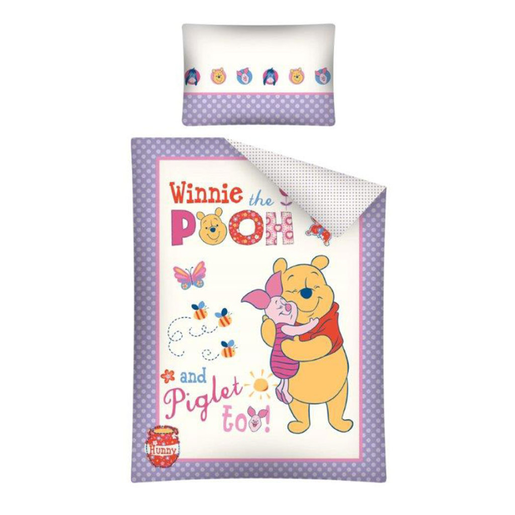 Dětské povlečení do postýlky Medvídek Pů a prasátko fialková 100/135 od firmy DETEXPOL. Ložní prádlo Medvídek Pů a prasátko fialková s medvídkem a jeho kamarádem. Druhá strana drobný vzor. Povlečení Medvídek Pů a prasátko fialková deka 100/135 a polštářek 40/60. Povlečení do postýlky, dětské povlečení, povlečení Disney Medvídek Pů.