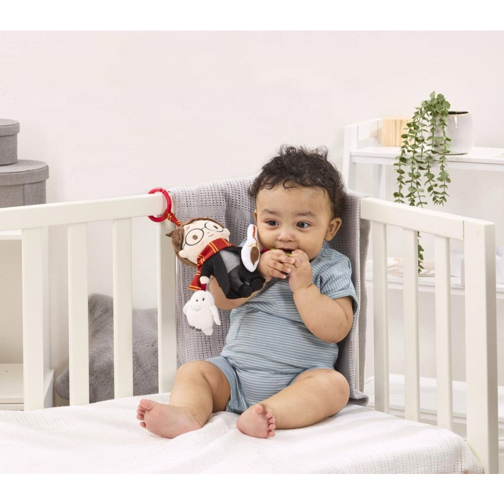 Plyšový kamarád s kousátkem a chrastítkem a pískající sovou! Je čas na kouzelná dobrodružství s Harrym Potterem! Tato zábavná závěsná hračka byla navržena tak, aby stimulovala smysly dítěte a podporovala hru v raném vývoji. Plyšový Harry Potter s kousátkem ve tvaru hvězdy má své typické kulaté brýle a jizvu po blesku, je oblečen do bradavické róby a na krku má barevný nebelvírský šátek. Harryho…