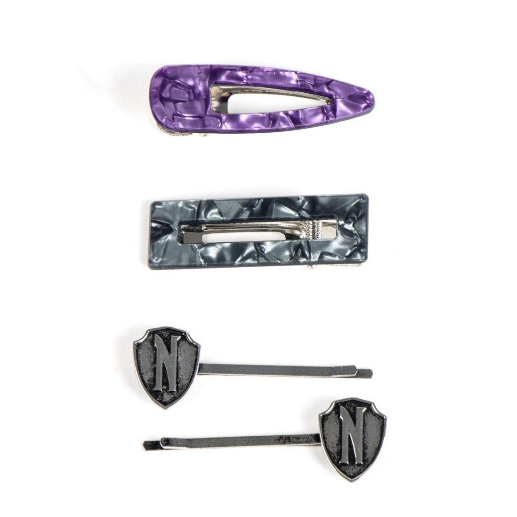 Sada 2 sponek a 2 klipů do vlasů s motivem Wednesday.