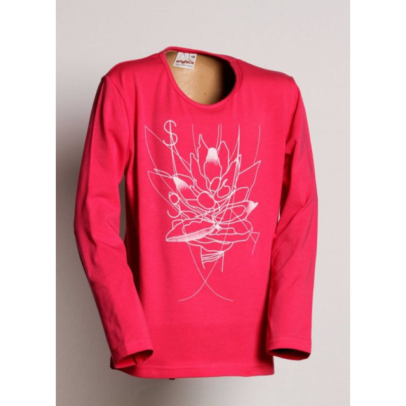 Dětské triko v barvě malinové. Dívčí tričko s dlouhým rukávem z příjemného pružného bavlněného materiálu s elastanem. Na předním díle trika je zajímavý potisk. Dětské oblečení je z materiálu 95% bavlna, 5% lycra. Elegantní triko pro holky je české značky Anyface - Kilian.