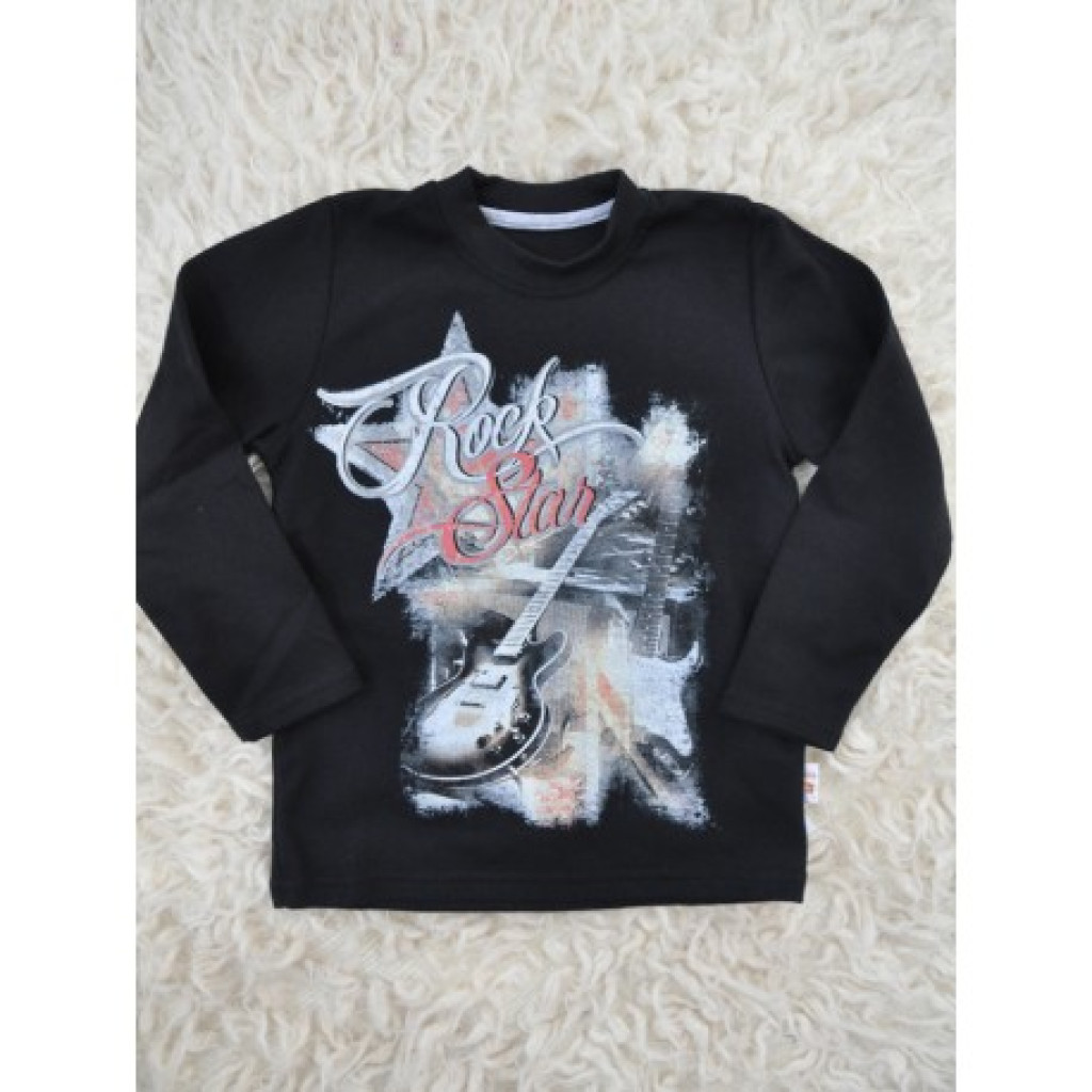 Dětské triko v černé barvě. Tričko pro malé rockery. S dlouhým rukávem a tiskem na přední straně.Výroba - firma MK. Dětské oblečení české značky. Pro Vaše miminko používáme při výrobě výhradně materiály té nejlepší kvality. Vaše děti jsou v našem oblečení v bezpečí.