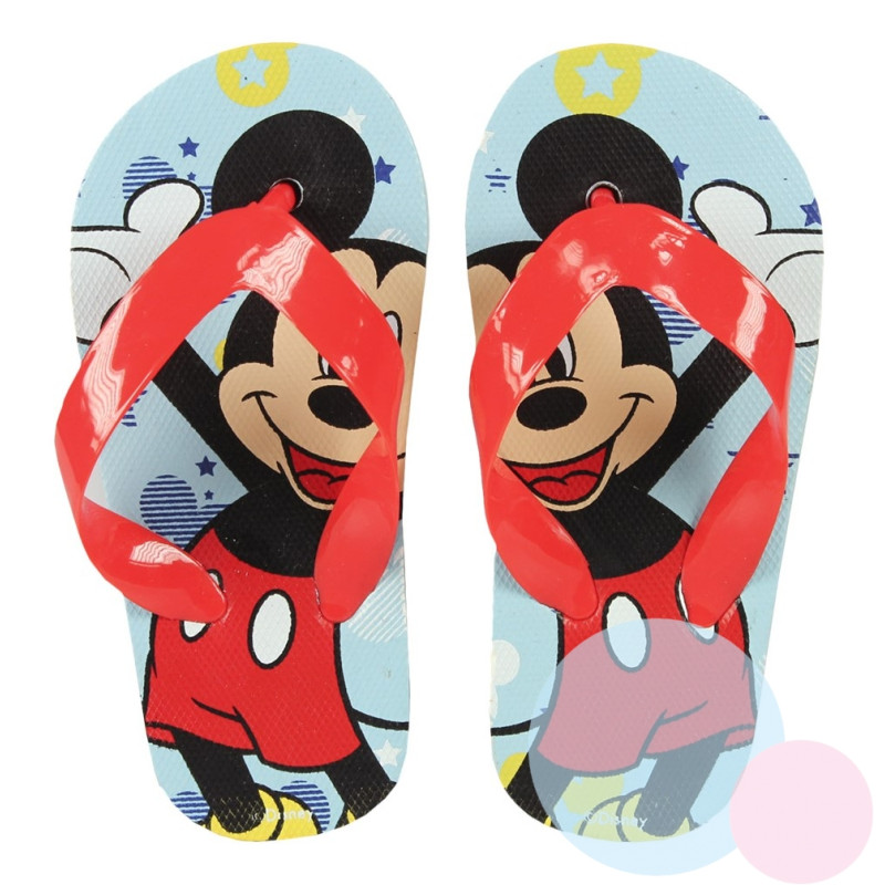Plážová obuv pro kluky s motivem Mickey. Modro-červené provedení. Dětské boty lze nosit k vodě, na zahradu či jako domácí obuv. Letní žabky Mickey Disney jsou pohodlné a děti je rády nosí pro jejich snadné nazouvání. Boty Mickey do vody, ale i na zahradu. Materiál 100% PVC. Oficiální licence.