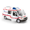Kovová sanitka po zmáčknutí svítí a vydává zvuk. Boční i zadní dveře se dají otevřít. Funguje na 3 x 1.5 V AG13 baterie.