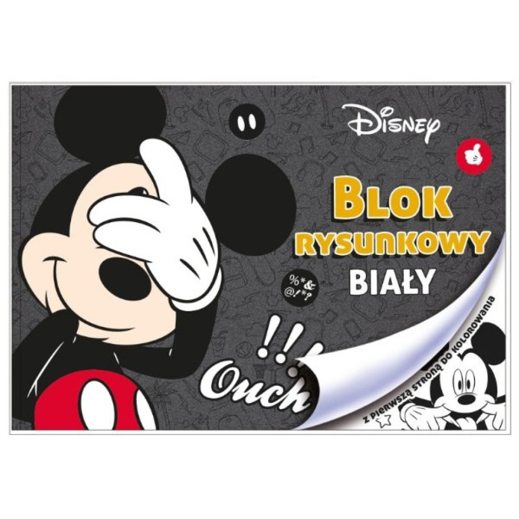 Kreslící trhací blok s motivem Disney Mickey Mouse formátu A4, 20 bílých listů ke kreslení, na 1. straně uvnitř obrázek k vymalování, vhodný pro děti od 3 let
