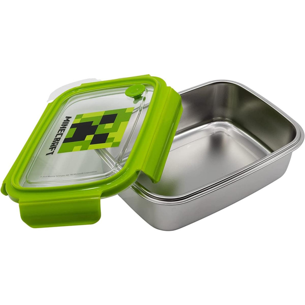 Nerezový box s uzávěrem a silikonovým těsněním v motivu Minecraft.
