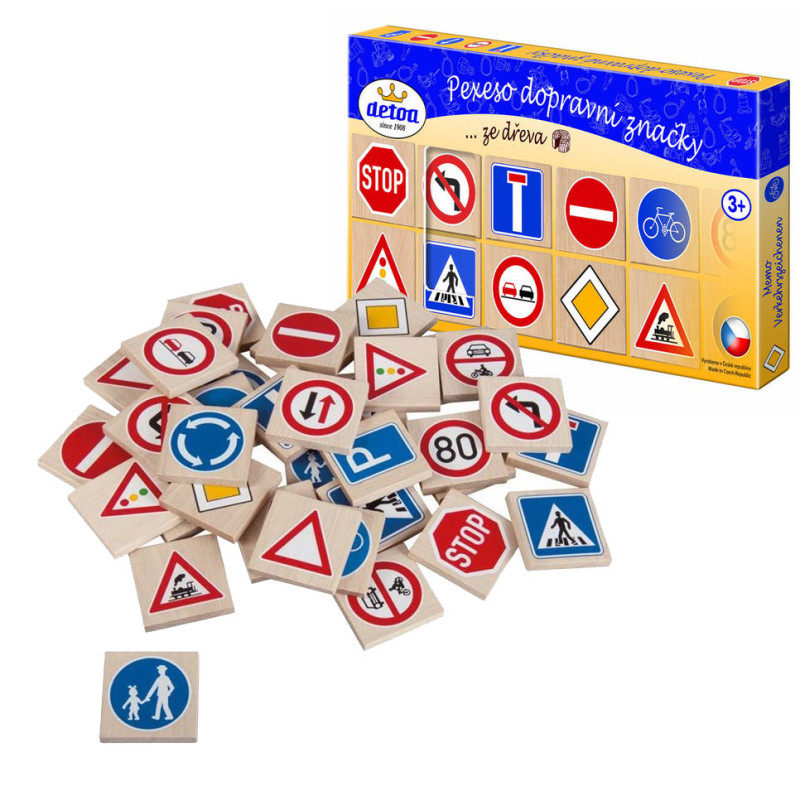 Pexeso, populární dětská stolní hra. Dopravní značky, jeden z předpokladů bezpečné orientace v dopravě! Děti se hravou formou naučí základní dopravní značky. Hra stimuluje paměť a podporuje rozvoj dětí, taktéž splňuje požadavky EU na bezpečnost hraček. Velikost kamene 40 x 40 x 6 mm.