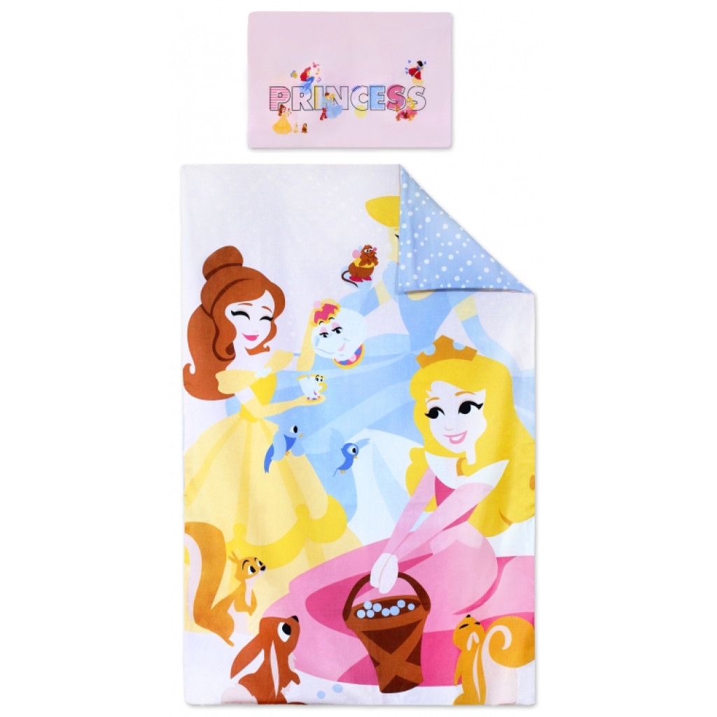 Dětské povlečení do malé postýlky s motivem Princezny. Povlečení je z materiálu 100% bavlna. Rozměr: polštář 40x55 cm, deka 90x140 cm. Dívčí povlečení Princezny ve světle růžové barvě.