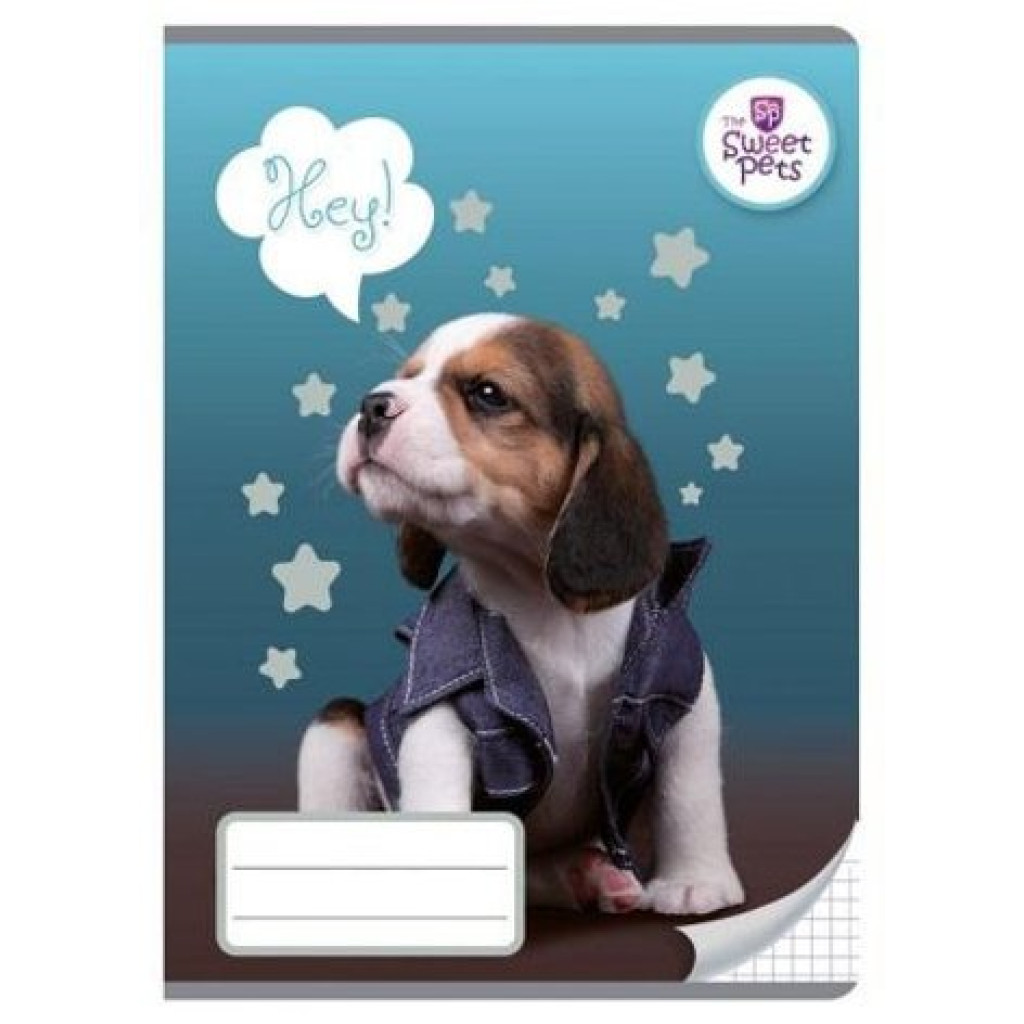 Sešit formátu A5 s motivem pejska, čtverečkovaný, 32 listů - 64 stran, přední a zadní strana pevný, lesklý papír, na přední straně jmenovka, vhodný pro děti od 3 let.