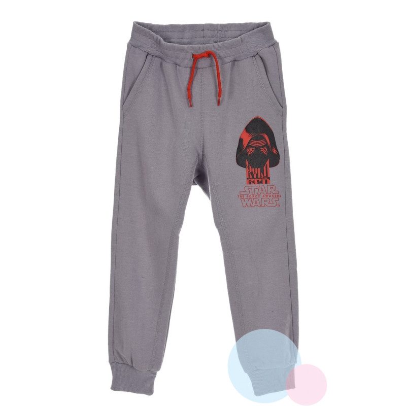 Dětské tepláky s potiskem Star Wars. Šedá barva. Sportovní kalhoty jsou z materiálu 35% bavlna, 65% polyester. Tepláky Hvězdné Války mají pro pohodlné nošení v pase širokou gumu, dvě kapsy, nohavice zakončeny pružnou manžetou. Dětské oblečení Star Wars v trendy provedení pro sportovní aktivity. Výrobce: Sun City.