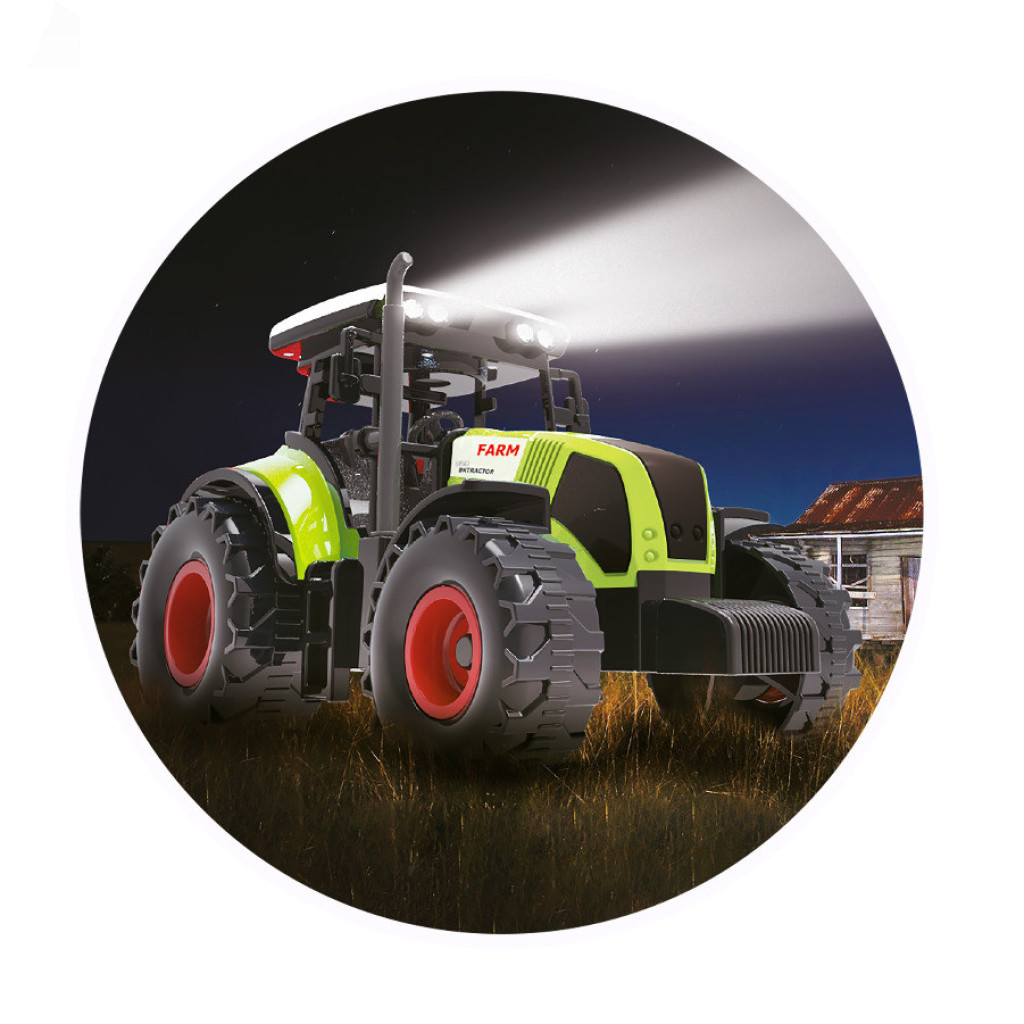 Moderní plastový traktor se zvukem a světlem, hračka z kolekce Moje malá farma. Nepostradatelný pomocník pro každého malého farmáře! Traktor jezdí na setrvačník a jeho délka je 14 cm. Zmáčknutím tlačítek traktor vydává reálné zvuky. Traktor vyžaduje 3 ks baterií typu AG13/LR44, které jsou součástí balení.