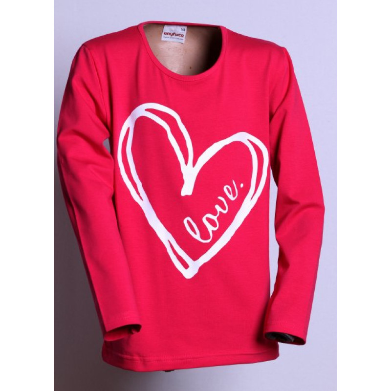 Tričko dívčí s dlouhým rukávem malinové barvy z příjemného pružného bavlněného jednolícního úpletu s elastanem. Na předním díle moderní dívčí bílý tisk aplikovaný novou technologií 3D tisku, materiál: 95 % bavlna, 5 % lycra, jednolícní úplet
