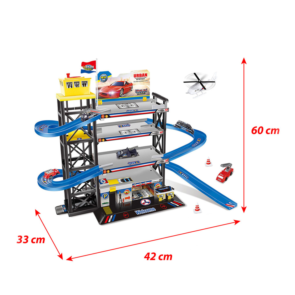 Teď už budeš mít všechna svá auta pohromadě! Sada obsahuje garáž se 4 podlažími, 3 autíčka a 1 helikoptéru. Vhodné pro děti od 4 let.