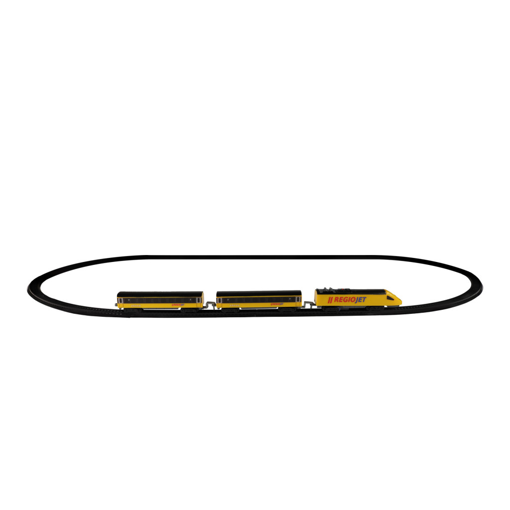 Milujete cestování vlakem? Tak sestavte koleje, postavte na ně lokomotivu, připojte vagóny a vzhůru za dobrodružstvím! Originální žlutý vlak RegioJet od Student Agency obsahuje žlutou lokomotivu a 2 žluté vagónky, 8 zahnutých a 4 rovné koleje. Lze vytvořit kolejiště až do velikosti 96 x 58 cm. Rozteč kolejí je 1,4 cm. Lokomotiva měří na délku 14 cm a vagón 13,5 cm. Lokomotiva jezdí na 1 ks AA… baterie (není součástí), na střeše lokomotivy vypínačem ON/OFF (zapnuto/vypnuto) uvedete vlak do chodu. Vlak RegioJet MINI lze kombinovat s vlakem Pendolino MINI a Slovenské dráhy MINI. více