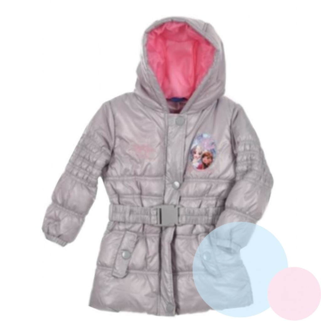Dívčí bunda s nášivkou Ledové Království ve stříbrné barvě. Prodloužená zimní bunda se zapínáním na zip je prošívaná. Se středně silnou vatelínovou výplní, polyesterová podšívka. Materiál 100% polyester. Bunda Disney Frozen s kapucí zahřeje dívky v zimním počasí. Výrobce: Sun City. Rozměry cca: délka/ šířka/rukáv od krku: vel. 104: 53/32/43, vel. 110: 55/35/45, vel. 116: 56/36/49